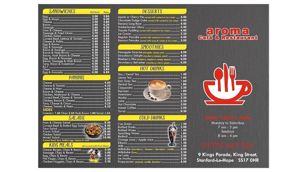 Aroma Cafe is nestled at 9, Kings Parade, King St, Stanford-le-Hope SS17 0HR, United Kingdom. This inviting cafe stands out due to its casual vibe and warm atmosphere that makes every guest feel at home. The cafe is fully wheelchair-accessible, with an accessible parking lot, entrance, and seating, ensuring that everyone can enjoy a meal here. Aroma Cafe is open every day of the week, providing reliable service when you crave great coffee or a hearty meal. You can reach them at +44 1375 643324 for any inquiries or reservations. The locale itself is quite quaint, surrounded by a friendly community that loves its local gems. The ever-busy Saturday lunch crowd indicates how well-loved this cafe is, so it’s always buzzing with conversation and laughter. Regular patrons rave about the friendly service and the quality of food; it quickly becomes a staple for many.
